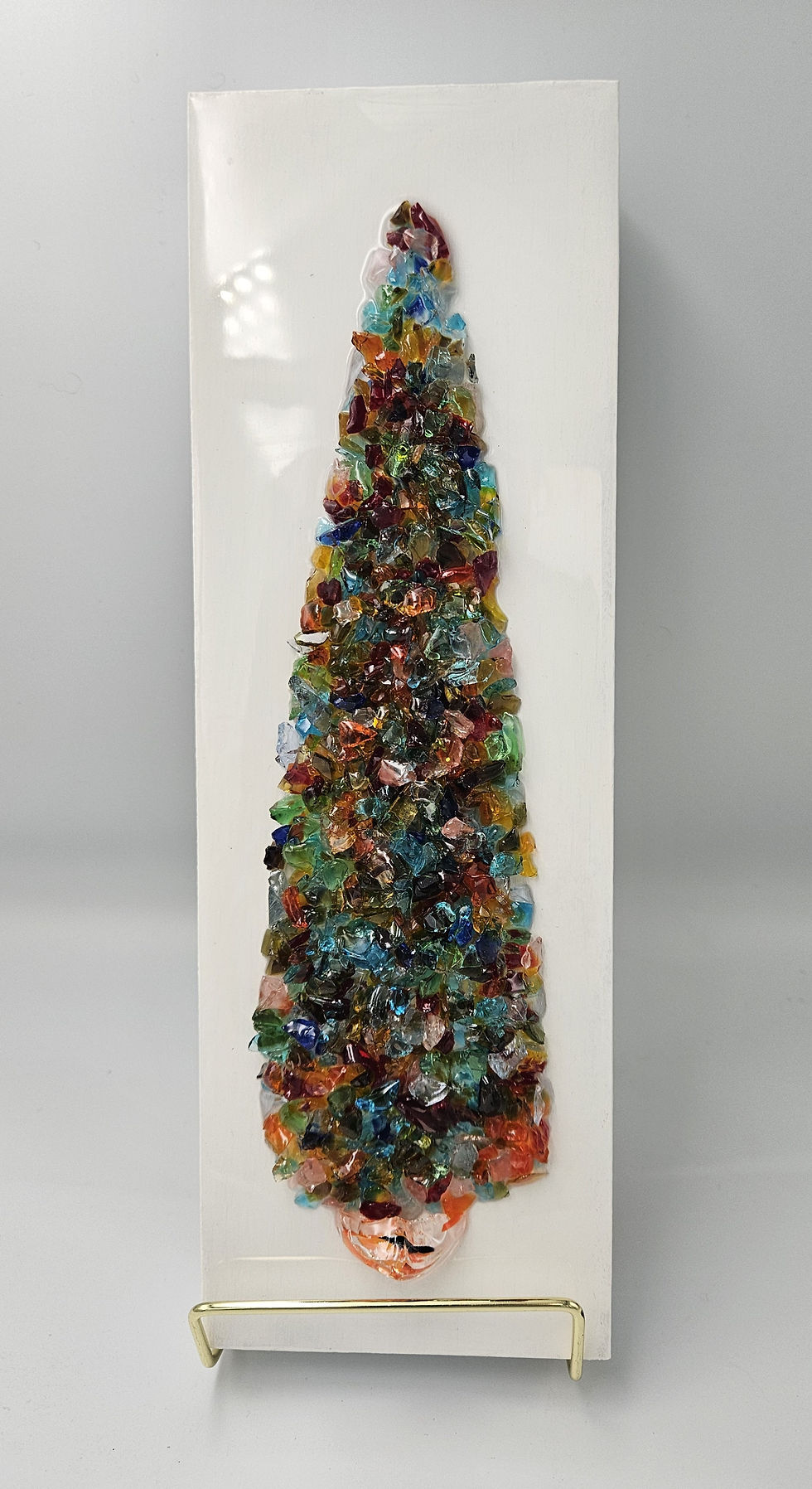 #205 Green glass Bird Lovers Tree with Multi Pearls