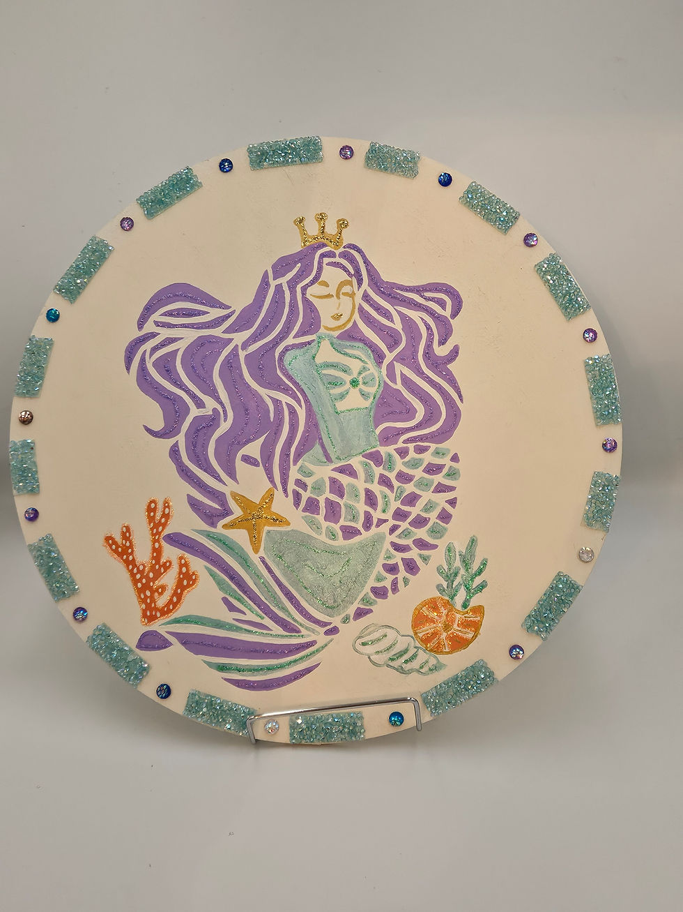 Wood planks or boards are primed and painted and either transfer images or decoupage images are applied and sealed before being enhanced with crystal and rhinestone embellishments.